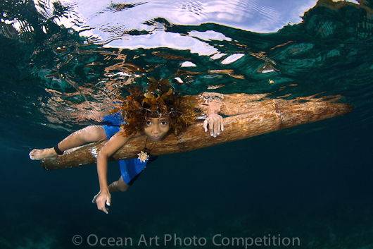 Dans la catégorie Divers/Fashion, le cliché gagnant montre un jeune garçon sur un morceau de bois flottant passer la tête sous l’eau. La photographie a été prise aux Philippines par Steve de Neef.