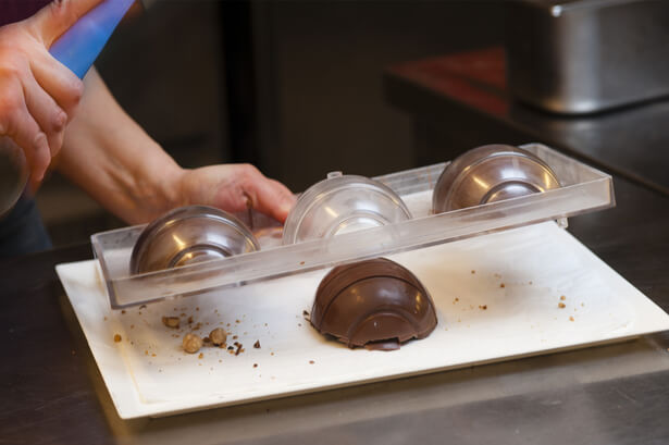 Avant la réalisation des oeufs surprises en chocolat, réservez vos moules au réfrigérateur : cela permettra au chocolat de se solidifier plus rapidement.