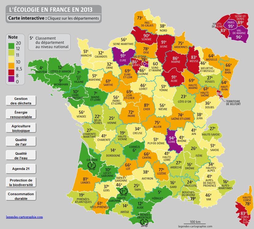Pour la 7e année consécutive, le magazine La Vie publie le palmarès de l’écologie. Le palmarès classe les départements français selon plusieurs critères liés à l’environnement et à la qualité de vie. Votre département est-il à la pointe ou à la traîne en matière d’écologie ?