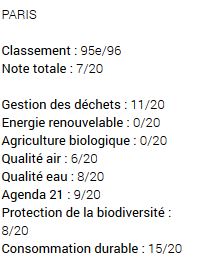 Les Bouches-du-Rhône sont également saluées pour le développement des énergies renouvelables (15/20), le Var pour son agriculture biologique (18,75/20) et l’Ardèche ainsi que le Limousin pour leur préservation de la biodiversité (17/20) et la qualité de leur air (18,75/20). Et comme dans tout classement, il y le top et … le flop !