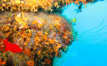 Anémones jaunes encroutantes, éponges et gorgones blanches