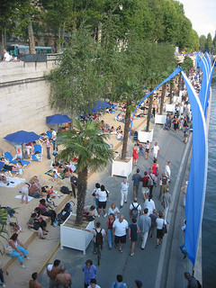 Paris Plage, c’est 5000 tonnes de sable en plein Paris, sur le bassin de la Villette et la voie Georges Pompidou.