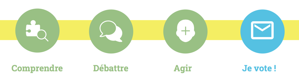 Grâce à du matériel pédagogique et à des vidéos ; les élèves découvrent ce qu’est une convention citoyenne à travers des témoignages puis ils sont invités à y réagir de manière argumentée. Vient ensuite le débat sous forme de plaidoirie, de jeu de rôle ou de débat mouvant et enfin l’action avec la mise à disposition d’un kit méthodologique pour organiser une Convention collégienne ou lycéenne pour le climat au sein de l’établissement.