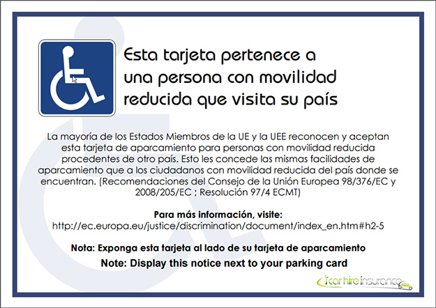 L’imprimé explique simplement que vous êtes un visiteur à mobilité réduite dans le pays et que votre carte de stationnement devrait vous permettre les mêmes droits de stationnement que dans votre pays.