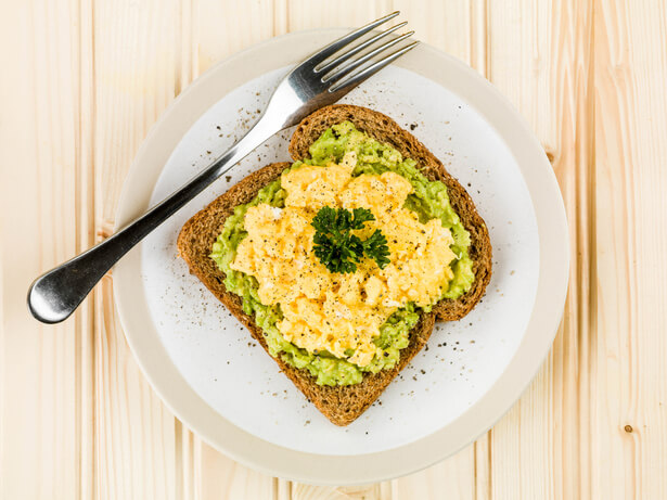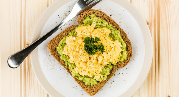 Sous la main : un avocat, un oeuf, pain complet grillé.