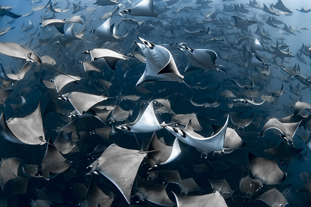 La gagnante de cette année a surtout pris en photo un moment incroyable à savoir un rassemblement énorme de raies Mobula au large du Mexique.
