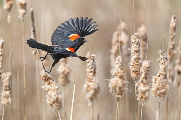 Le Carouge à épaulettes (nom donné à l’oiseau à cause de ces marques rouges sur le haut de ses ailes) est un oiseau qui se porte bien…