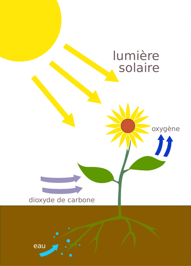 Pour faire simple, lors de la photosynthèse, les plantes et certaines bactéries synthétisent de la matière organique (dioxyde de carbone, eau, sels minéraux) en exploitant la lumière du soleil, rejetant ensuite du dioxygène.
