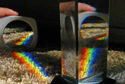 C’est là-dessus que travaille actuellement Harry Atwater, un professeur de physique appliquées et des matériaux au California Institute of Technology (Caltech). Il cherche à diviser la lumière du soleil en 8 à 10 couleurs différentes. Jusque là les méthodes employées étaient plus classiques : lentilles, miroirs et filtres, soit The Dark Side of the Moon au-dessus du toit, pour schématiser. Un peu encombrant et pas très efficace du fait de l’imprécision du matériel optique et de la difficulté à séparer la lumière en plus de deux rais bien distincts.
