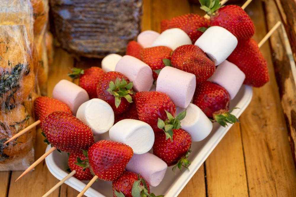 Préparation : Coupez le melon, l’ananas et les fraises en morceaux. Enfilez alternativement un morceau de fruit et un marshmallow sur des brochettes. Gardez les brochettes au frais jusqu’au moment de partir.