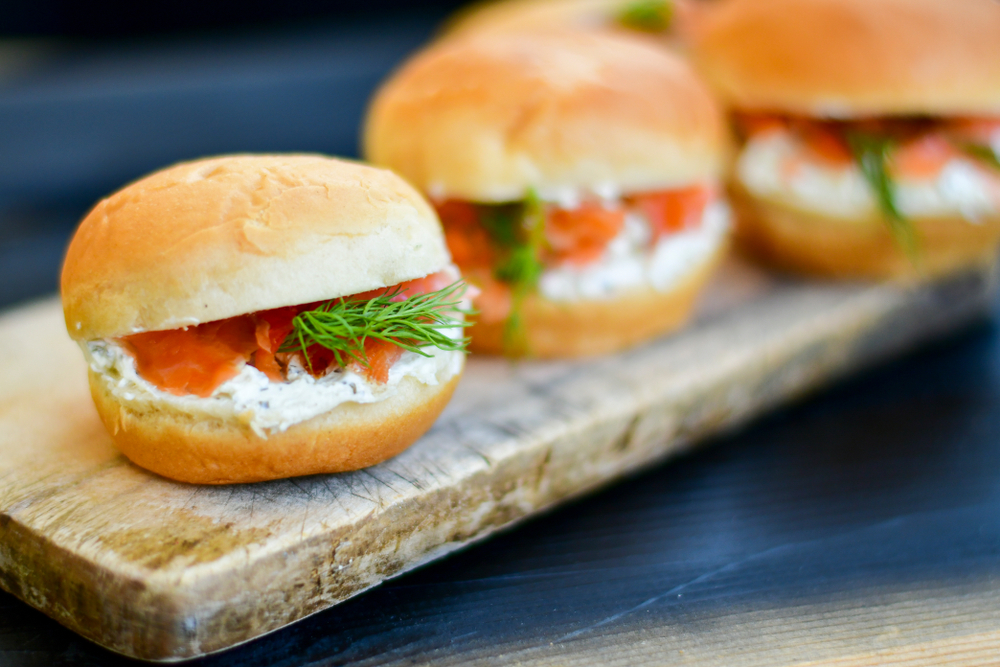Préparation : Tartinez chaque pain avec du fromage à tartiner. Ajoutez une tranche de saumon fumé, une tranche de concombre et un peu d’aneth. Emballez chaque mini sandwich individuellement pour faciliter le transport.
