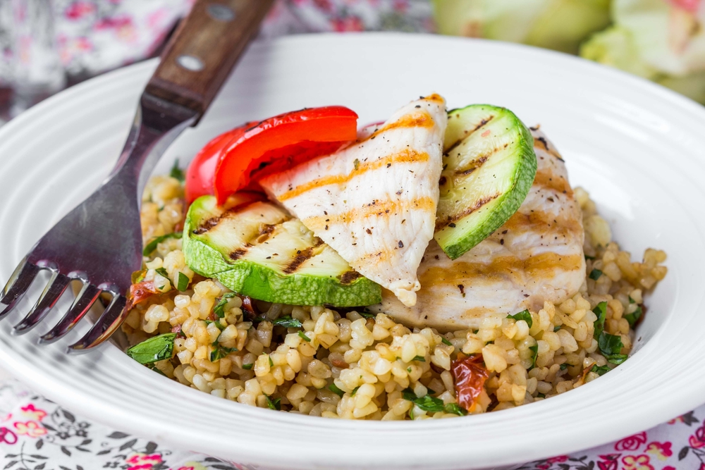 Préparation : Faites griller les blancs de poulet, puis laissez-les refroidir et coupez-les en tranches. Préparez le quinoa selon les instructions de l’emballage, puis laissez-le refroidir. Coupez le poivron en petits dés. Mélangez le poulet, le quinoa et le poivron dans un grand saladier. Arrosez d’huile d’olive et de jus de citron, puis assaisonnez avec le sel et le poivre.