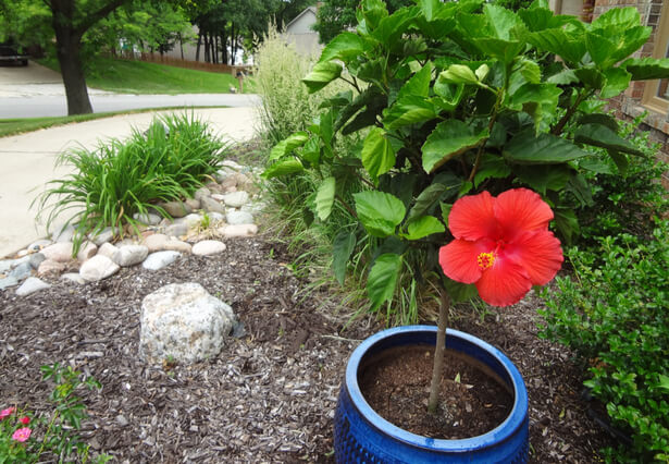 Les hibiscus sur plaisent vraiment en pot, mais ne peuvent absolument pas passer l’hiver dehors © Jon Kraft