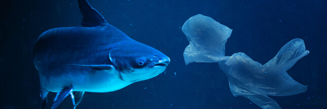 Illustration bannière : Poisson nageant au côté d’un déchet plastique – © Pavlova Yevheniia