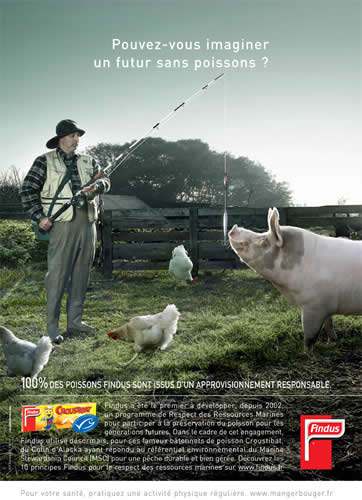Les connaisseurs reconnaîtront en ces vertébrés des espèces en voie de disparition et/ou longtemps victimes de surpêche. En effet Findus explique cette envolée des prix par la raréfaction de ces matières premières, avec notamment de moins en moins de poissons sauvages, alors que la demande mondiale explose*…