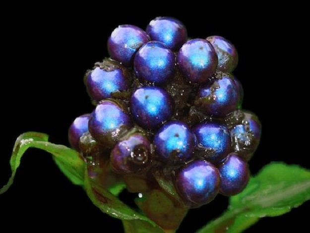 Les fruits de Pollia condensata reflètent une lueur bleue vibrante et irisée, quasi métallique qui a l’air d’être pixelisée. Fait étonnant, cette belle et vive couleur se conserve des années, voire des décennies sans s’altérer. Un fruit de 1974 brille toujours autant aujourd’hui qu’à la date de sa cueillette. Les Africains utilisent pollia condensata depuis longtemps à des fins décoratives mais ce sont maintenant des scientifiques qui se penchent sur ce petit miracle naturel : ils veulent comprendre comment un vulgaire fruit peut avoir une couleur aussi resplendissante et aussi persistante ?