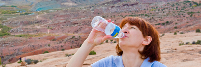 Illustration bannière : Femme terminant une bouteille d’eau dans un parc national – © Irina Mos