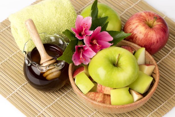 Passez le fruit rincé et non pelé au blinder, ajoutez 5 cuillères à café de miel, pour ses vertus apaisantes et hydratantes, et deux gouttes d’huile essentielle de pomme (facultatif). Laissez poser sur votre visage pendant 5 à 10 minutes. Pour tous les types de peau, en particulier sèche et sensible.