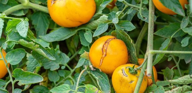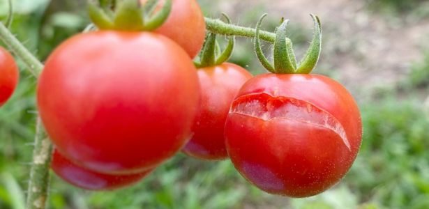 Une période de temps sec suivie d’une forte pluie peut, de la même manière, provoquer la fissuration des tomates, car elles absorbent trop rapidement l’excès d’eau par rapport à leur croissance.