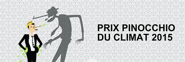 Depuis plusieurs années, l’ONG environnementale Les Amis de la Terre fait élire par le public le prix Pinocchio du climat, pour dénoncer des entreprises dont les actes seraient en complet décalage avec leur discours « green ». Cette année, les votes viennent d’être ouverts pendant un mois, jusqu’au 2 décembre 2015. Le 3 décembre, une cérémonie de remise des prix sera organisée pour « récompenser » les heureux gagnants.