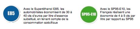 > Le bioéthanol est présent dans tous les carburants essences et notamment dans le SP95-E10 (jusqu’à 10 % de bioéthanol) et le Superéthanol E85 (jusqu’à 85 % de bioéthanol).