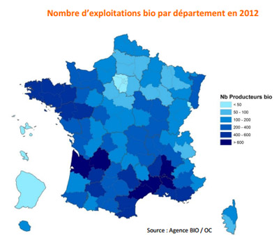 Il existe et persiste cependant, des régions qui sont plus bio que d’autres. Parmi les 3 régions qui possèdent le plus d’exploitations on retrouve :