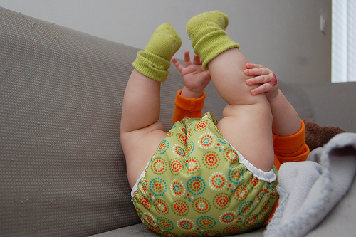 Avec une couche lavable, bébé produit 3 fois moins de déchets.