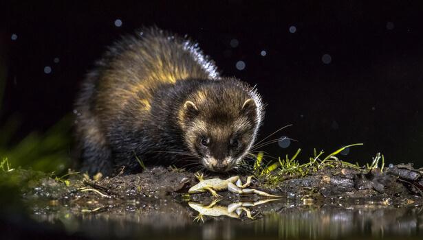 Le putois d’Europe (Mustela putorius) est une espèce de mustélidé bien de chez nous qui se nourrit quasi exclusivement de micro-mammifères de tous poils, mais qui peut, de temps à autre, rajouter toutes sortes de petits animaux à son menu, comme par exemple des batraciens.