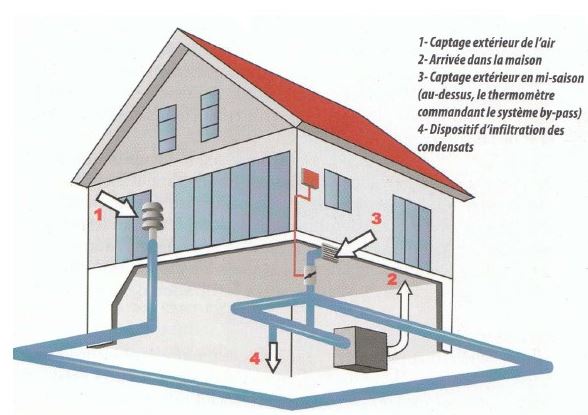 pour chauffer ou refroidir l’air neuf de ventilation des habitats. Le principe se base sur le fait que la température de l’air extérieur peut varier de -20°C à +40°C au cours de l’année, tandis que la température du sol à quelques mètres de profondeur est plus stable. Découvrons ce système de ventilation à part entière…