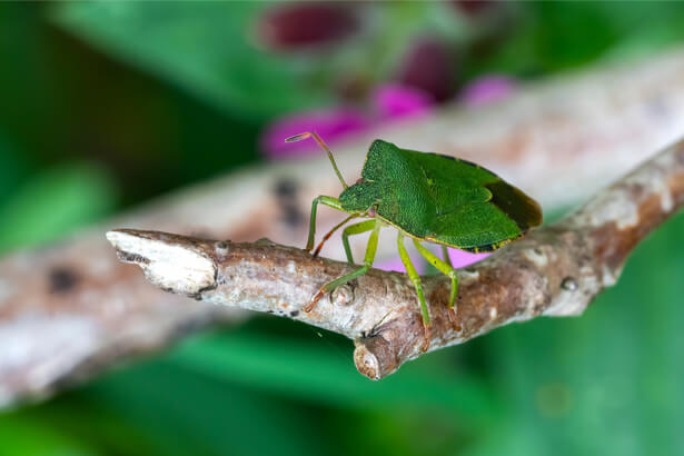 Une punaise des bois (Palomena prasina) autochtone, aussi appelée punaise verte © Tony Baggett