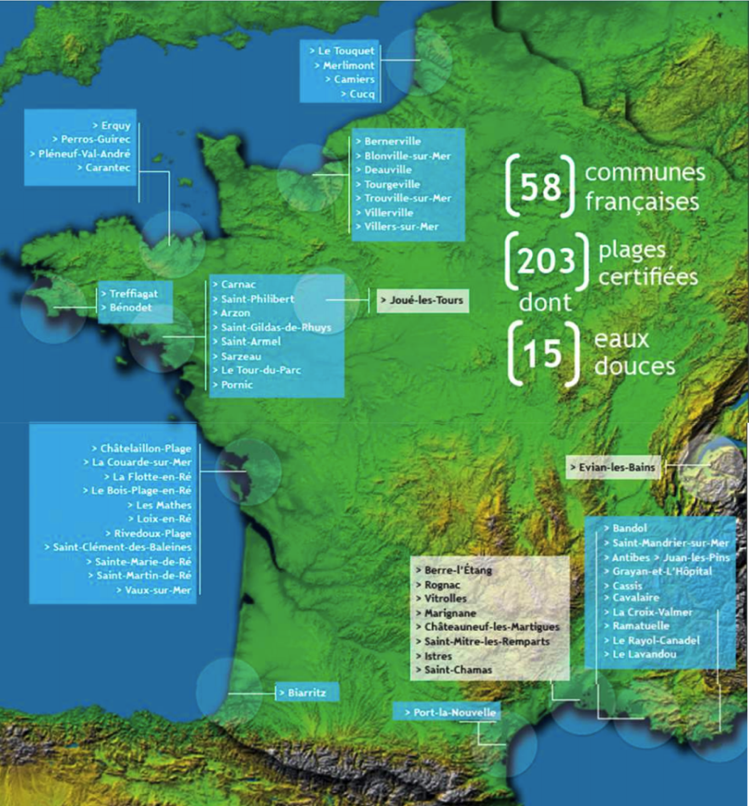 La certification « Démarche qualité eaux de baignade » a été créée en 2009 par le Ministère de l’écologie, du développement durable et de l’énergie, en collaboration avec l’Association des Elus du Littoral (ANEL), l’Association Nationale des Maires des Stations Classées & des Communes Touristiques (ANMSCCT) et la Fédération Professionnelle des Entreprises de l’Eau (FP2E). En 2009, seules 9 communes avaient obtenu le label. Le site baignades.sante.gouv.fr offre des informations complètes sur le sujet.