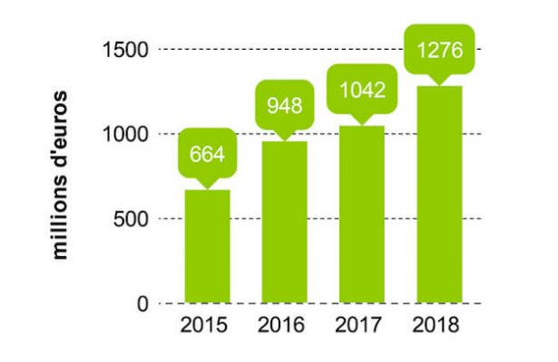 La croissance du commerce équitable entre 2015 et 2018 en millions d’euros © Commerce Équitable France