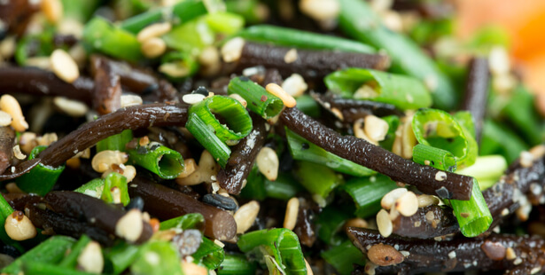 - Réhydratez tout d’abord les algues dans l’eau froide pendant une trentaine de minutes puis cuisez-les 15 min dans l’eau avec le bouillon cube.