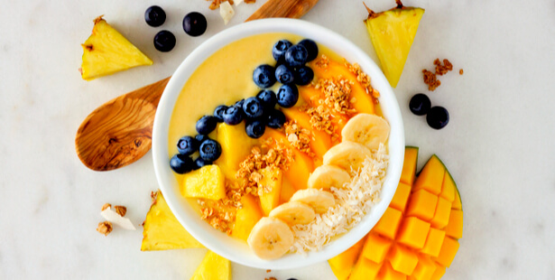 Le smoothie mangue se prête particulièrement bien à un smoothie bowl vitaminé ! © JeniFoto