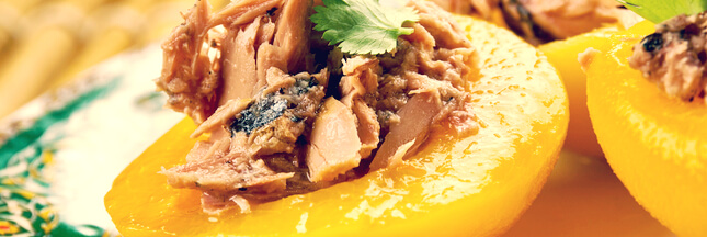 Voici une entrée très facile à réaliser aux saveurs estivales. Quand le goût du thon rencontre le sucré de la pêche, cela donne cette recette très rapide et adaptable facilement au nombre de convives.