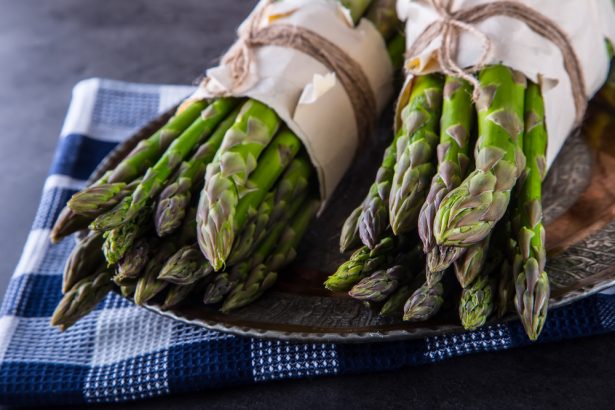 - Couper les pointes des asperges et conserver les tiges pour une autre préparation.