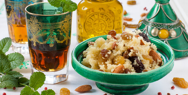 Quand le couscous sucré apparaît, il se fait dessert pour notre plus grand plaisir. Il allie la fraîcheur des fruits à la délicatesse du miel et s’accompagne du croquant des fruits secs.