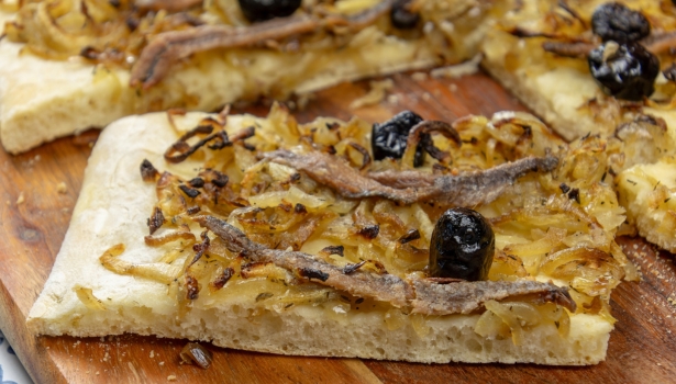 Son nom dérive du mot niçois « pissalat » un condiment à base d’anchois salés et de sardines. Traditionnellement, la pissaladière était une tarte faite avec une pâte à pain garnie d’oignons caramélisés, d’anchois et d’olives noires. Cette recette remonte au XIVe siècle et était autrefois cuite dans les fours à bois communaux. Aujourd’hui, la pissaladière est appréciée comme un emblème de la cuisine niçoise et méditerranéenne.