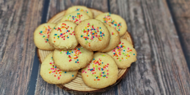 Garnir immédiatement avec les grains de sucre. Laisser les cookies refroidir pendant quelques minutes.
