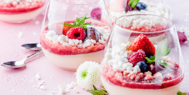 Légère et fruitée, la panna cotta vanille au coulis de fruits