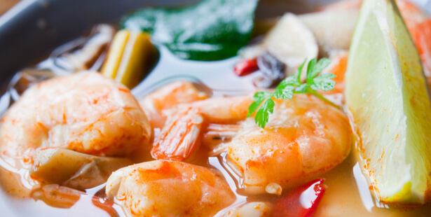 Le bouillon aux crevettes et thé vert, un cousin du Tom Yam Kung thaïlandais, très piquant ! © JoannaTkaczuk