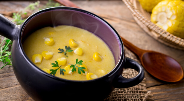 Pour une entrée plus originale, réalisez un velouté de maïs avec du bouillon de légumes, de l’oignon, de la crème fraîche et un peu de fécule de maïs pour épaissir. Parfumez avec du cumin ou de la muscade. Peut-être préfèrerez-vous une soupe de maïs aux accents plus exotiques. Remplacez la crème par du lait de coco et ajoutez du gingembre râpé. Parsemez de coriandre fraîche.