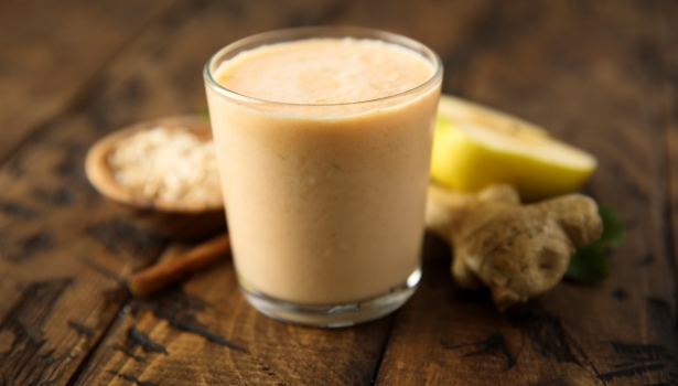 Pelez le nashi et la banane, puis coupez-les en morceaux. Mettez-les dans un blender avec le lait d’amande, le gingembre, le miel et les glaçons. Mixez jusqu’à obtenir une texture lisse et homogène. Dégustez immédiatement.