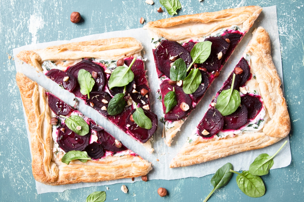 - Tranchez les betteraves et disposez-les sur la pâte.