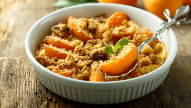 Enfournez le plat pendant environ 25 à 30 minutes, jusqu’à ce que le crumble soit doré et croustillant.