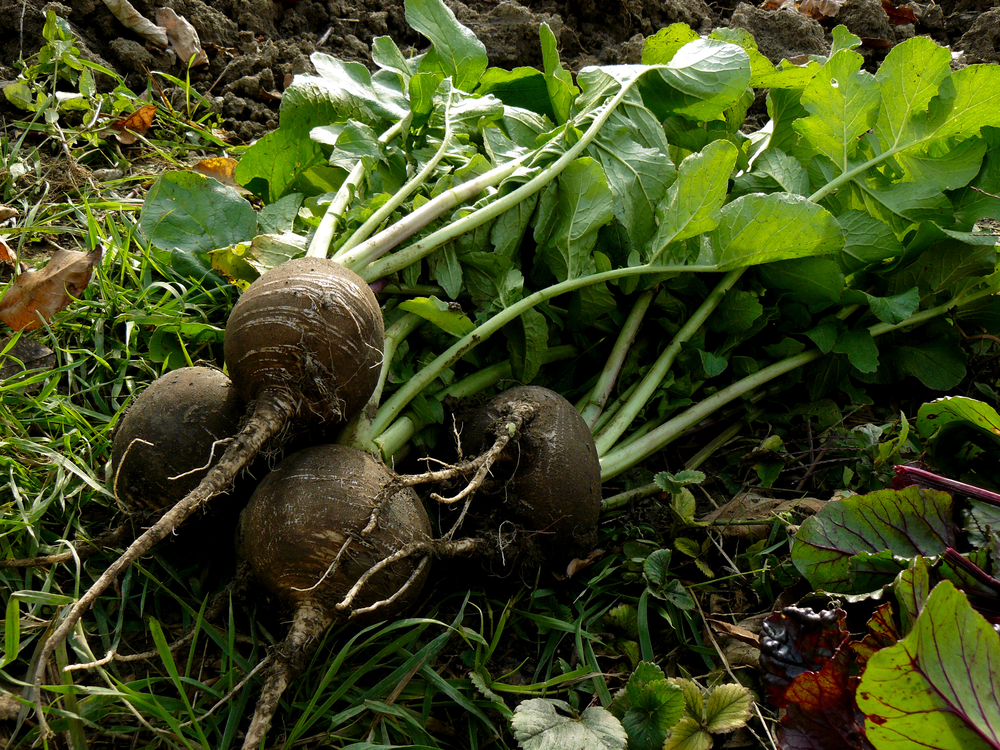 - Lorsqu’ils sont prêts à être récoltés, arrachez les radis d’hiver avec leurs racines, puis laissez-les ressuyer (sécher) plusieurs heures au sol.