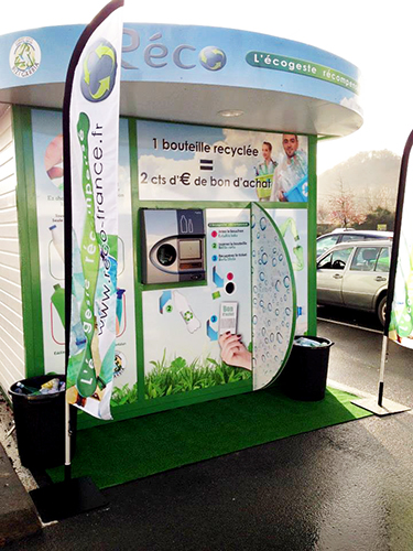 « L’écogeste récompensé« , c’est d’ailleurs bien l’idée de base de Réco France®. La société installe un collecteur sur un parking de magasin. Les consommateurs apportent alors bouteilles et flacons en plastique et les déposent dans le collecteur.