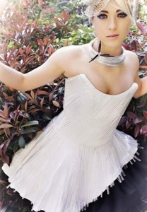 Réalisée par la styliste Annette Carey , cette robe pour le moins originale se pare de 1200 stylos à bille Bic Cristal transparents et de 2000 cristaux de la marque Swarovski.