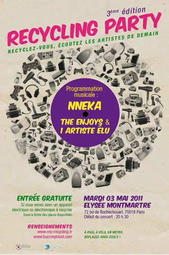 Du 3 au 28 mai 2011 a lieu la 3ème édition du Recycling Party Tour, une tournée musicale dont l’entrée est gratuite pour toutes les personnes amenant un appareil électrique ou électronique usagé à recycler…