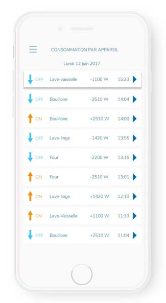 - On retrouve ces données sur l’application smartphone, et bien d’autres encore, comme par exemple la consommation appareil par appareil, ou encore des conseils concrets pour économiser et savoir quelle action est vraiment efficace pour son logement.